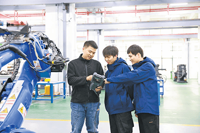 为推进校企结合培育,深化产教融合,瑞金中等专业学校教师正在智能制制实训核心指点学生对工业机械人进行实操锻炼,强化实践能力。